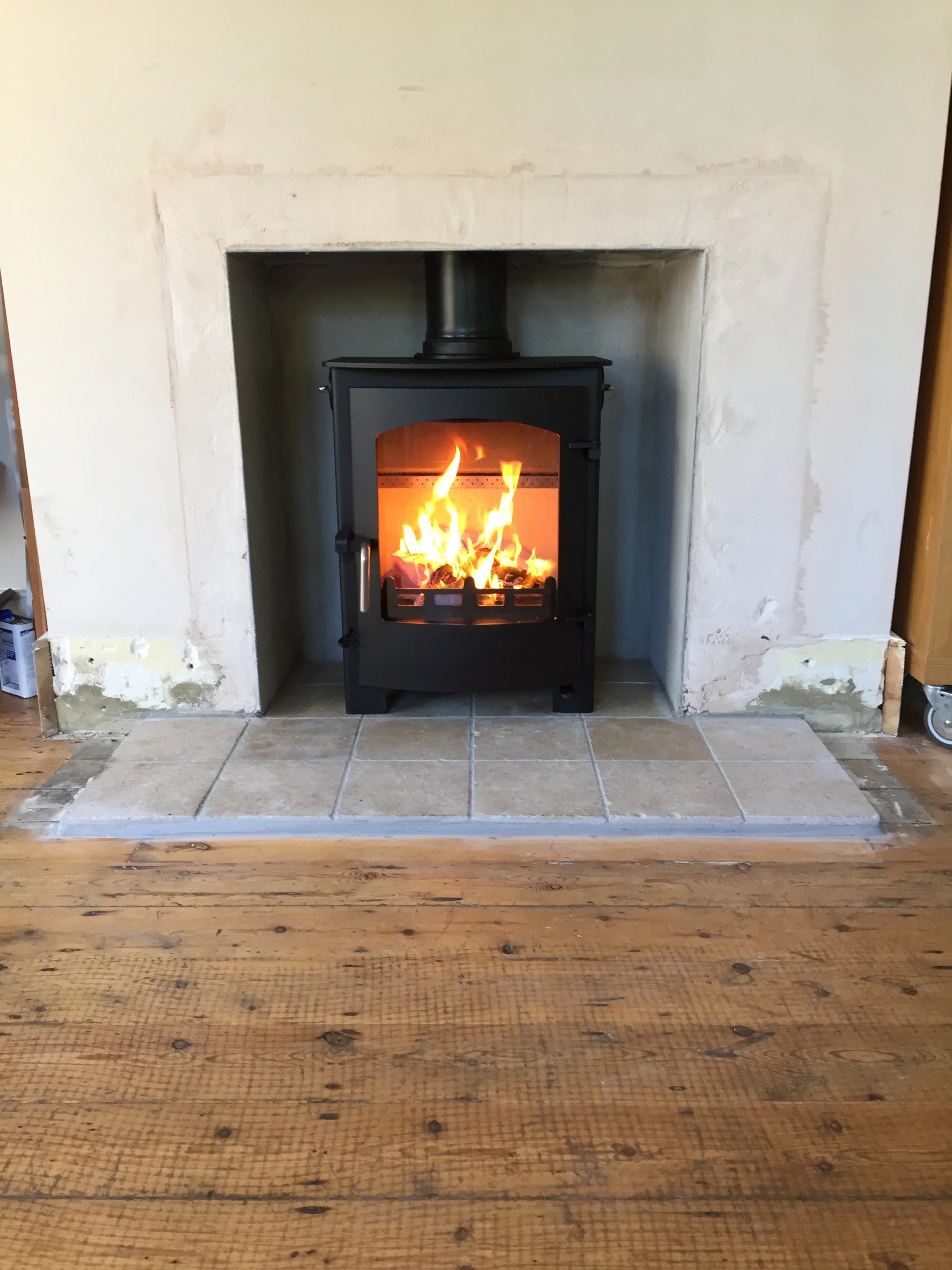 Other than that everything else was straight forward, we had anticipated that we would have to make a hole in the chimney breast above where the burner is situated (hence the unfinished plastering) but in the end it wasn't required.